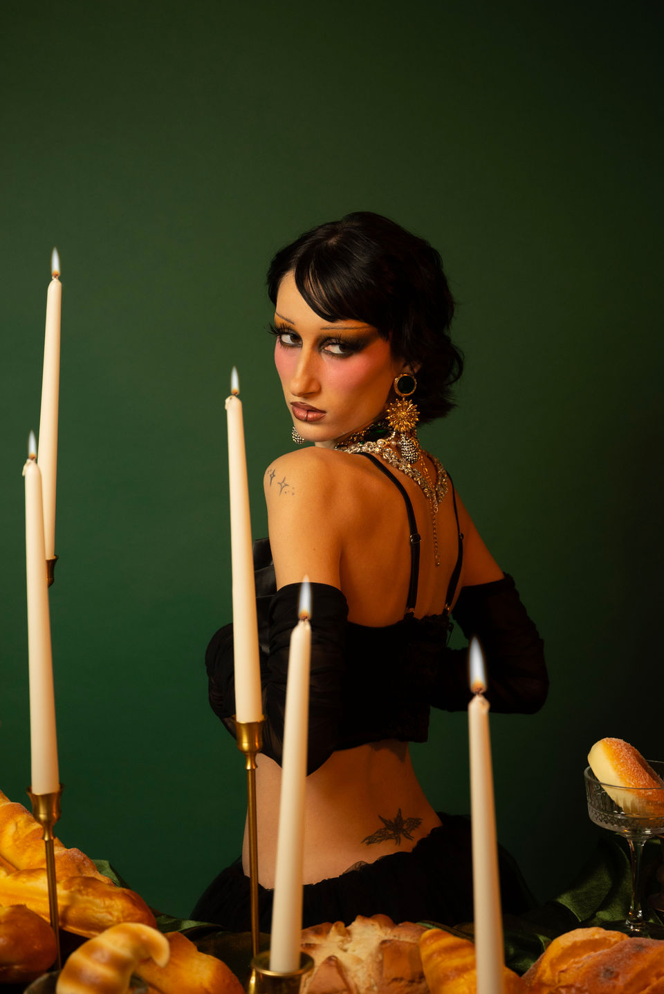This photoshoot reimagines bread as a symbol of decadence and power. Set against candlelight and velvet, it celebrates indulgence and elevates life’s simplest pleasure to opulence.